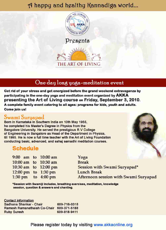he Sprituality (Adhyatma) and Philosophy (Darshana) committee invites all the attendees of WKC 2010 to the various programs of our committee. The programs include lectures and panel discussions on various aspects of Spirituality and Philosophy. The themes of the lectures and discussions include the contributions of Philosophers such as Shankara, Ramanuja and Madhva. Also the contributions of Dasas and Sharanas will be the topics of presentations. There will be both youth forum as well as Adult forum to discuss and find answers for the various challenging questions of life and living. In these forums there will be opportunities for the program attendees to participate in the discussions. There will also be programs planned jointly with Dance committee and Literary committee.